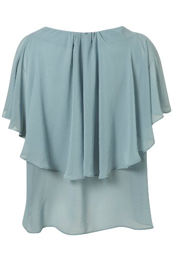 เสื้อผ้าชีฟองสีเบจ ปกบัวสีดำ ด้านหน้าทำเป็นชั้นๆเล็ก