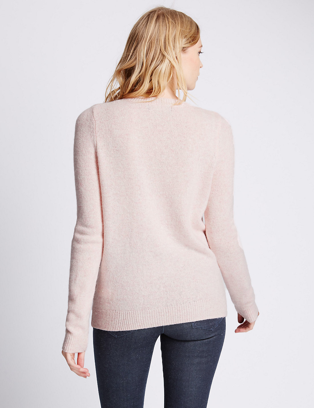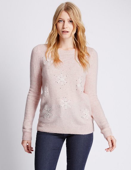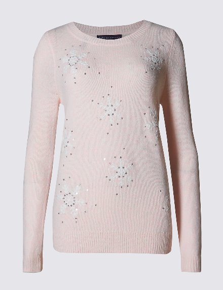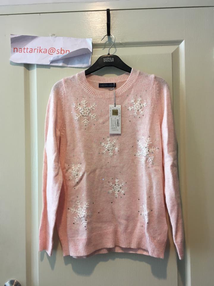 ♥♥–MARK @SPANCER SIZE S OR UK 10 เสื้อสเวตอร์ผ้าไหมพรมผสมวูลสีชมพูหวานลายเกร็ดหิมะน่ารักๆ