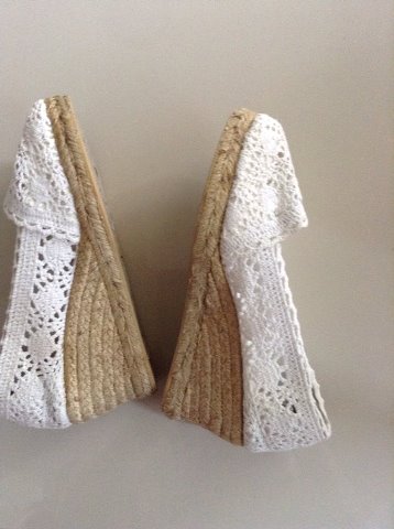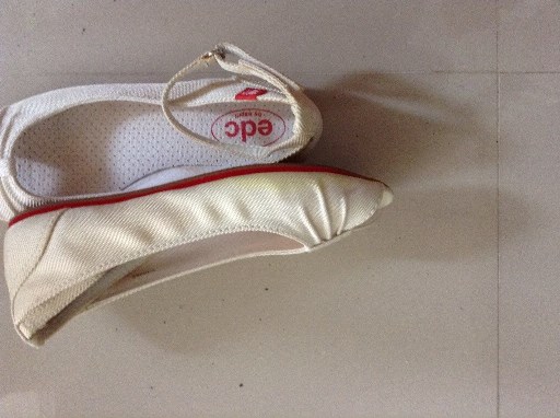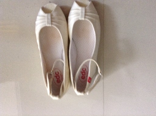 ESPRIT Size 36 รองเท้าส้นเตี้ยสีขาวน่ารักดี แต่มีตำหนิข้างขวาสีไม่สม่ำเสมอด่างเล็กน้อยตามภาพที่เห็นแต่เวลาใส่แทบจะไม่เห็นตำหนิที่ว่า