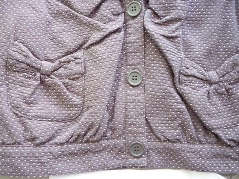 เสื้อคาดิแก้นลายหัวใจเล็กๆทั่วตัวโทนสีม่วงขาวน่ารกสดใสมากเลยค่ะ กระดุมน่ารัก