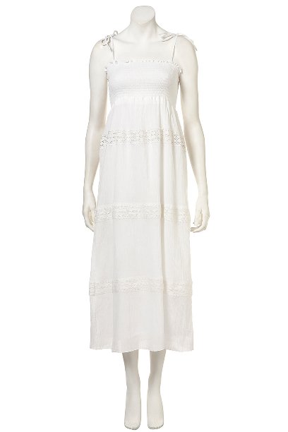 เดรสผ้าลูกไม้สีครีมแขนกุด ซิบซ่อนด้านข้าง