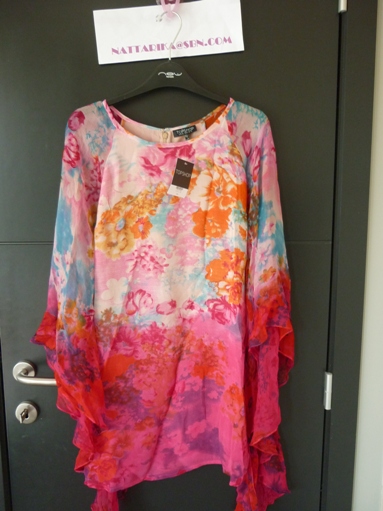 เสื้อผ้าไหมพรมเนื้อนุ่มสีชมพูหว้านหวาน เข้ารูปนิดๆแขนสั้นใส่สบายมไม่ร้อนค่ะ