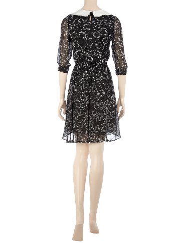 เดรสน่ารักช่วงบนเป็นผ้าชีฟองสีขาวขอบดำระบายสวยๆ