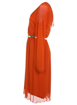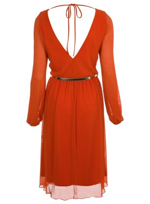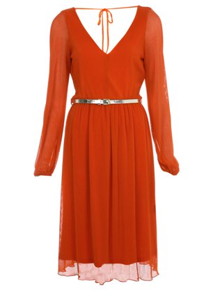 เดรสสีส้มอิฐอัดพรีทตรงกระโปรงสวยๆมาพร้อมเข็ดขัดทองเข้าคู่กัน