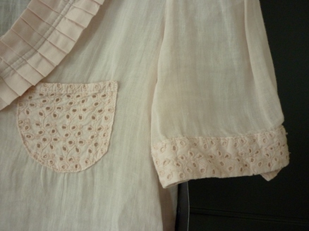 เสื้อฝ้าฝ้ายสีชมพูดีไซน์เก๋ช่วงคอ แขนกะกระเป๋นเป็นลูกไม้ถักสีขาว