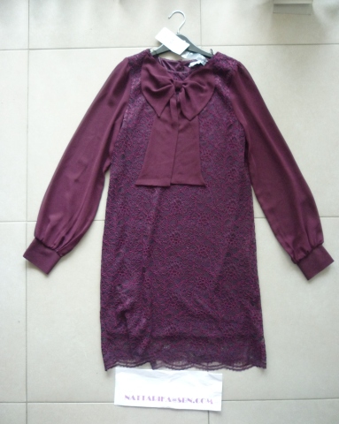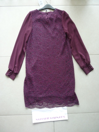 ช่วงตัวเป็นผ้าลูกไม้สีม่วงสวยมีซับในทั้งตัวค่ะ ช่วงแขนเป็นผ้าชีฟองสีม่วง