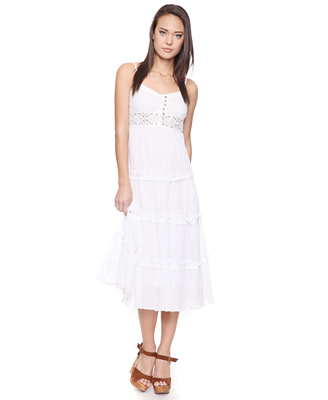 เดรสผ้าฝ้ายสีขาว สายปรับได้ ดีเทลลูกไม้น่ารัก