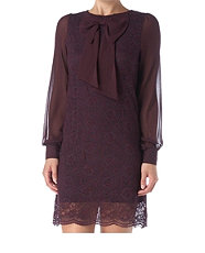 เดรสลูกไม้ผ้าชีฟองสีม่วงสวย ดีเทลเก๋ด้วยโบว์อันใหญ่ด้านหน้า