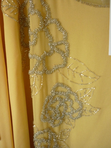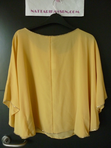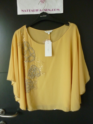 เสื้อผ้าชีฟองเหลืองครีม ปักเลื่อมดอกไม้ แขนระบายเหมือนปีกผีเสื้ออ่ะคะ