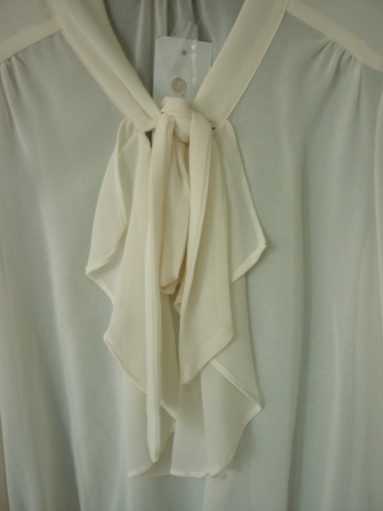 เสื้อผ้าชีฟองสีครีมระบาย+ผูกโบว์ด้านหน้า