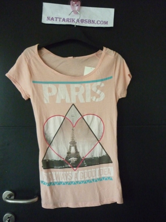 Pimkie เสื้อผ้าคอตต้อนสีชมพูลายน่ารักโบว์สีดำเป็นโบว์จริงๆน่ะคะ