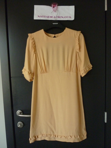 เดรสสีเบจคาดเข็มขัดน่าร้ากก ตัวนี้จะเก๋ที่เป็นผ้าชีฟองด้านข้างกระโปรงเวลาจะเหมือนแบบจากเวปเลยค่ะ