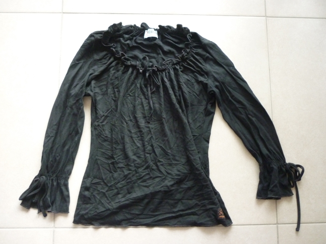 –♥♥–‘๏’ Morgan เสื้อผ้าคอตต้อนสีดำ คอย่นๆผูกโบว์ตรงแขนด้วย ทรงเข้ารูป คนขายใส่2ครั้ง ในรูปผ้ายับไปหน่อยเพราะพับใส่ตู้ไว้ 290 ฿–♥♥–‘๏’