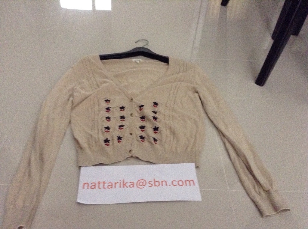 ♥♥–‘๏’>moggys คาดิแก้นผ้าไหมพรมสีขาวปลายแขนน่ารักมากๆ ฟรีไซด์
