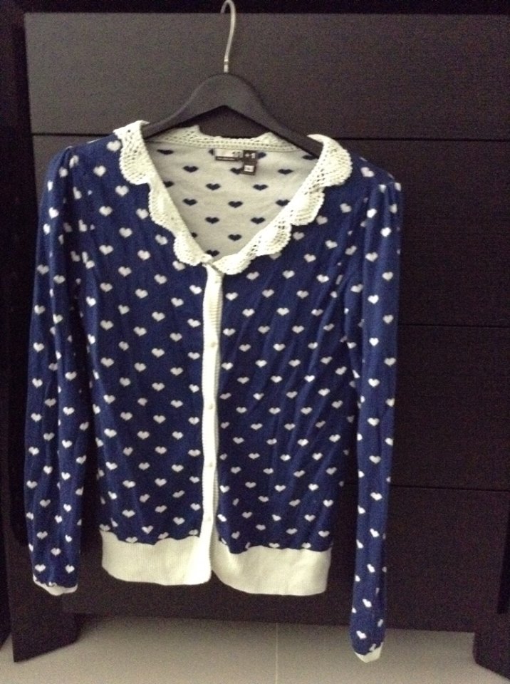 เสื้อคาดิแก้นผ้าไหมพรมลายหัวใจเล็ก คอบัวลูกไม้น่ารักค่ะ