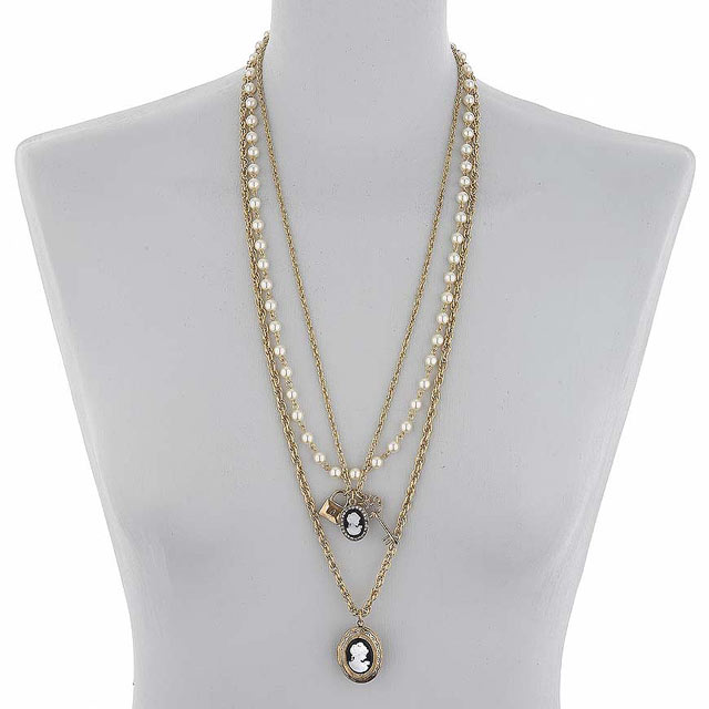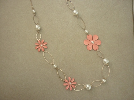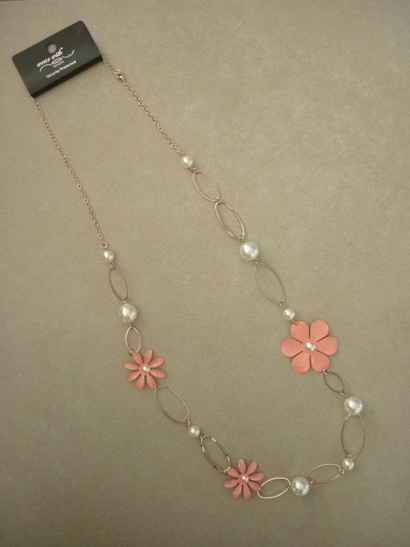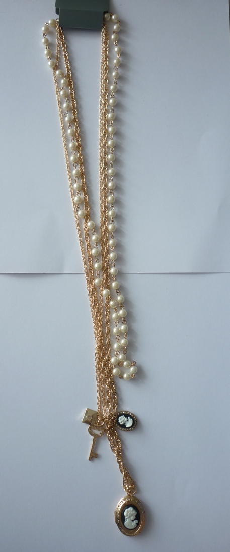 [B♥ミ]DOROTHY PERKINS FREE SIZE NEW สร้อยคอ+ลูกปัดสีดำ+มุก+หุุ้มผ้าลูกไม้สีครีม+ดอกไม้สีครีม+ดำ