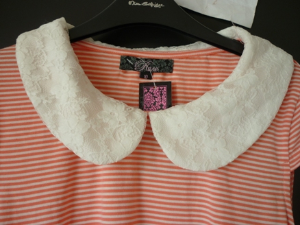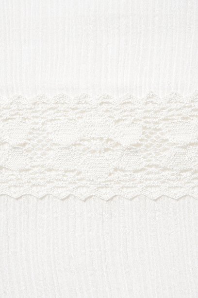 ตรงคอเป็นลูกไม้ถักสีขาวค่ะ ปลายแขนจั้มใส่ขึ้นมา