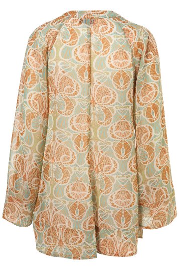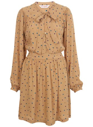 เสื้อผ้าชีฟองคอบัว ผูกโบว์ที่คอ ลายดอกไม้โทนน้ำตาลคลาสิคสวยๆ
