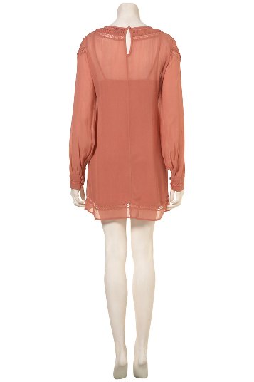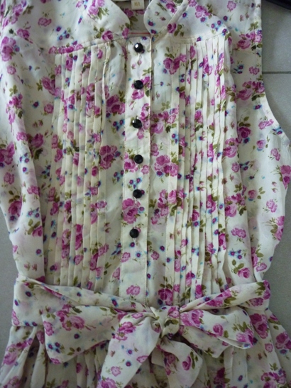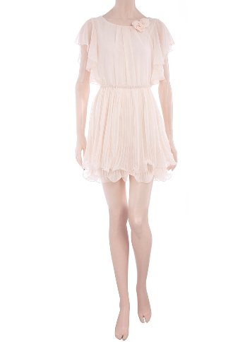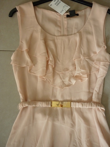 เดรสแสนสวยตัวเสื้อเป็นผ้าชีฟองสีชมพูผูกโบว์ด้านหน้า