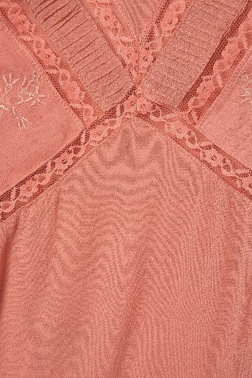 เสื้อผ้าฝ้ายสีชมพูอ่อนหวานๆ ดีเทลลูกไม้+ลูกไม้ถักน่ารักด้านหน้าน่าร้าก