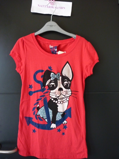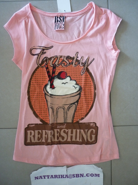 เสื้อผ้าคอตต้อนสีชมพูลายการ์ตูตรงชายเสื้อด้านหน้า+ด้านหลัง