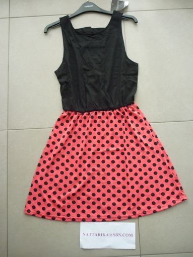 เดรสลายจุดปกสีขาวแบบน่ารักๆ พร้อมส่ง1ตัว