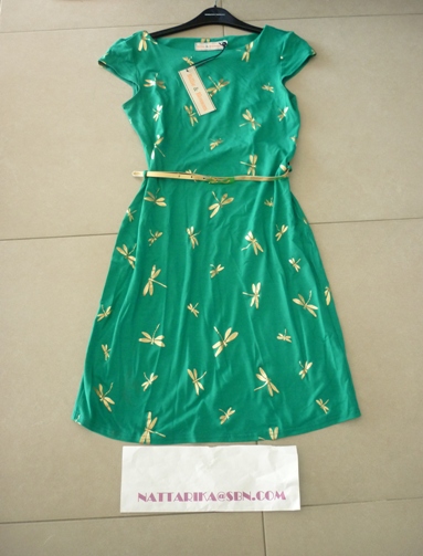 ลายจุดสีเขียวกระดุมทอง ทวิตจับจีบด้านหน้าน่ารักมากๆเลยค่ะ