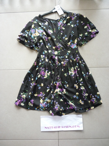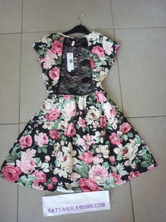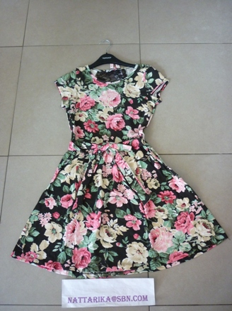 เดรสลายดอกไมีดีเทลด้านหลังลูกไม้สีดำน่ารักๆ ผูกโบว์ที่เอวด้านหน้าหรือหลังก็ได้ค่ะ