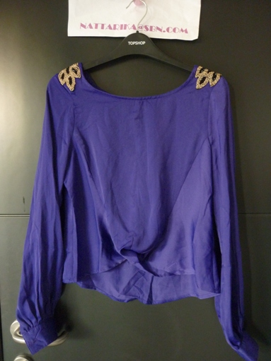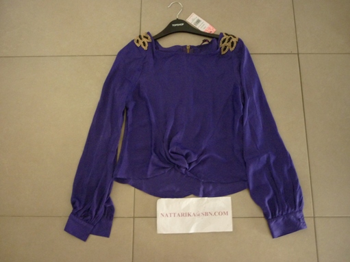 เสื้อสีม่วงสวยๆดีเทลเก๋ตรงหัวไหล่พลอยสีดำทั้งสองข้าง