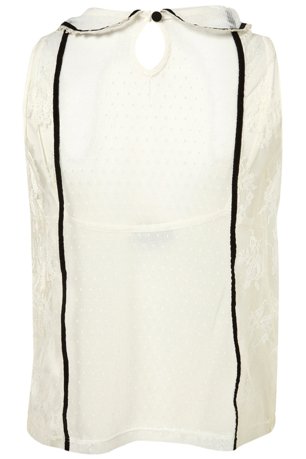 เสื้อแขนกุดสีขาวครีมผูกโบว์สีดำด้านหน้าดีเทลชายเสื้อนารักๆ