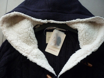 ZARA SIZE L เสื้อแจ๊กเก๊ตผ้าไหมพรมสีน้ำเงินเข้มๆ มีฮู้คขแกะ กะตรงปลายแขนด้วยน่ารักมากกก