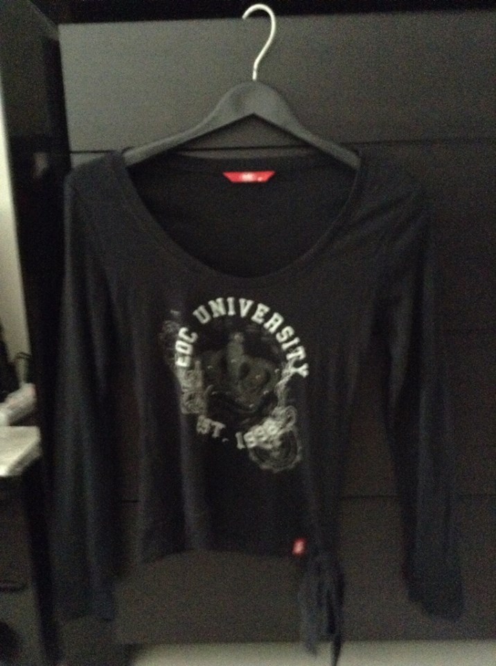 ♥♥–‘๏’–Esprit เสื้อผ้าคอตต้อนแขนสั้นสีดำ พิมพ์ลายน่ารักๆSize M สภาพใหม่มากๆ แม่ค้าใส่แค่ครั้งเดียว ใส่กะยีนส์ น่ารักสุดๆเลยนะคะตัวนี้