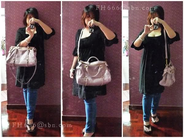 รูปตอนสะพาย เป็นหลักฐานอย่างดีว่าหุ่นอวบระยะกลายพันธุ์ก็สะพายโบว์กะเขาได้ =w=;; (ขออภัยกระจกเขรอะ แหะๆ ลืมเช็ดค่า)