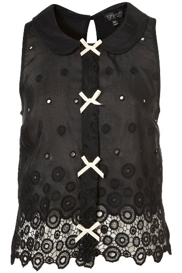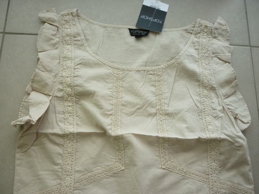♥ミ♥ミTOPSHOP Crochet Overlay Frill Blouse Size uk 10