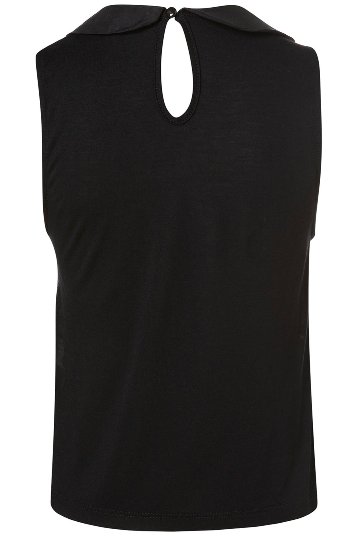 เสื้อแขนกุดสีขาวครีมผูกโบว์สีดำด้านหน้าดีเทลชายเสื้อนารักๆ