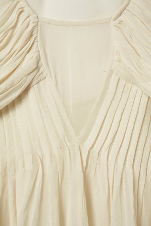 เสื้อผ้าฝ้ายสีครีมระบายแขนและชาย2ฃั้น+ลูกไม้ถัก