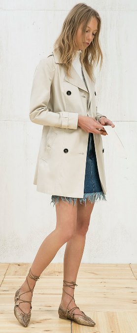 **ใหม่ขั้นเทพมากผ่านการใช้งานครั้งเดียว**♥♥–BERSHKA beige trench coat Size L อกวัดแบบติดกระดุม39-40นิ้ว