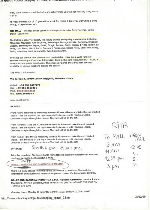 เราต้องไปขึ้นรถที่บริษัท SITA นะคะ เยื้องๆ กับ สถานีรถไฟ เราก็ลืมถ่ายทางเข้าท่ารถ อารมณ์ ประมาณหาเจอแล้ว รีบไปซื้อตั๋วดีกว่า ค่าตั๋วคนละ 6 Euro นิดๆต่อ 1 เที่ยวนะคะ บอกที่คนขายตั๋วว่า The Mall แค่นี้ก็ get แล้วค่ะ แล้วก็ให้ซื้อ ไปกลับเลย เดี๋ยวจะงง คุยกับคนขับรถไม่รู้เรื่องเค้าไม่พูดอังกฤษ เลยค่ะ เวลารถไปกลับ นี่ให้ดูเวลาตรงที่ผึ้ง scan ติดไว้ด้านล่างนะคะ หรือไม่ก็ เกาะตามคน asia เลย ถามเค้าว่าไป the mall รึเปล่า ถ้าใช่ก็แอบตามเค้าเลยเหมือนเรา รถที่จะไปเนี่ย จะไปที่ Leccio ลองดูที่กระดานวิ่งนะคะ เราจำได้ว่าขึ้นที่ท่ารถ เบอร์ 10 ค่ะ รถเค้าจะเวลาเป๊ะๆ มาก พอได้ตั๋วมาให้ไปปั๊มเวลาบนรถนะคะ คนจะกรูไปขึ้นรถกันแล้วก็เข้าแถวปั๊มเวลาที่ตั๋วค่ะ นั่งรถจาก Florence ไป outlet บวกลบไม่น่าจะเกิน 45 นาทีนะคะ รอยละ 95 คนเอเชียทั้งนั้นเลยค่ะ ^^