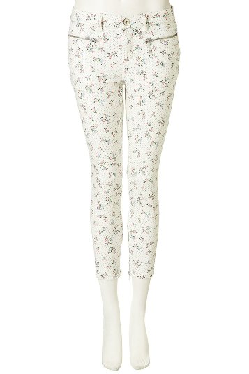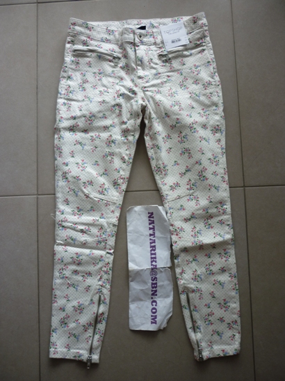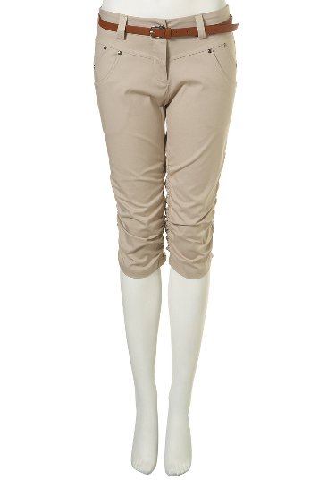 กางเกงผ้าสแปนแด๊กซ์สีเบจปลายขาย่นน่ารักๆ
