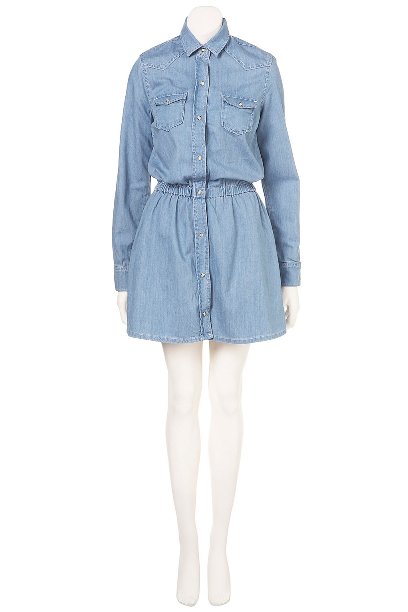 กระโปรงยาวสีฟ้ากระดุมด้านหน้าน่ารักๆ