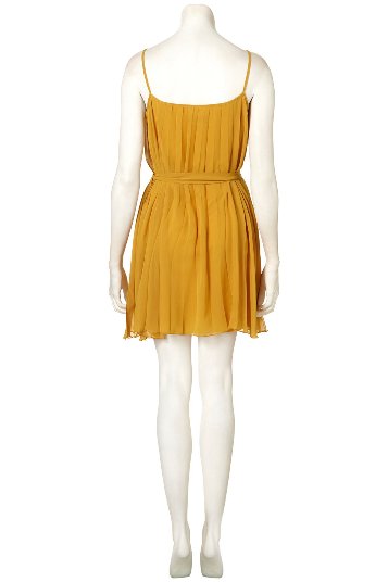 เดรสผ้าชีฟองสีเหลืองทอง อัดพรีทสวยๆผูกโบว์ที่เอวน่าร้ากก
