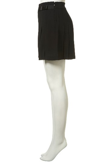 กางเกงกระโปรงสีดำอัดพรีทด้านหน้า ตรงเอวทำเป็นขอบโบว์สีดำน่าร้ากก