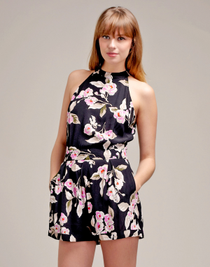 เดรสสายเดี่ยวลายดอกไม้แสนสวยด้วยคริสตัลใสรอบเอว