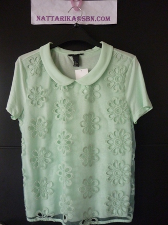 เสื้อคอบัวสีมิ้น ดีเทลด้านหน้าลูกไม้ดอกไม้น่าร้ากกกก