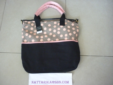 กระเป๋าใบใหญ่มีาสายบ่าแยกมาให้ด้วยค่ะ จะถือหรือสะพายก็ได้ดีเทลลายจุดชมพูด้านหน้า +หูหิ้วสีชมพุน่ารักดีนะคะ