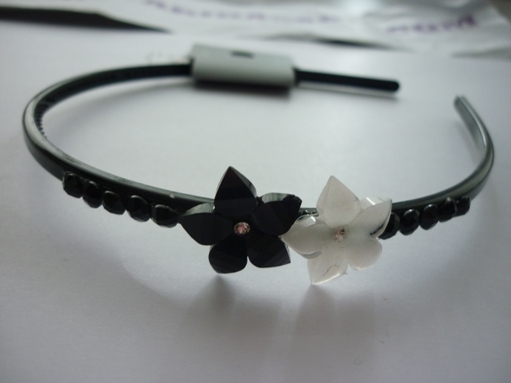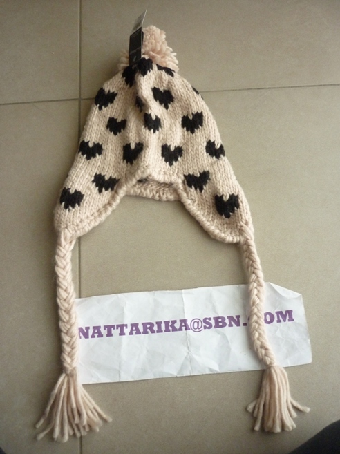 หมวกไหมพรมโบว์สีดำไข่มุกสีขาวน่าร้ากก