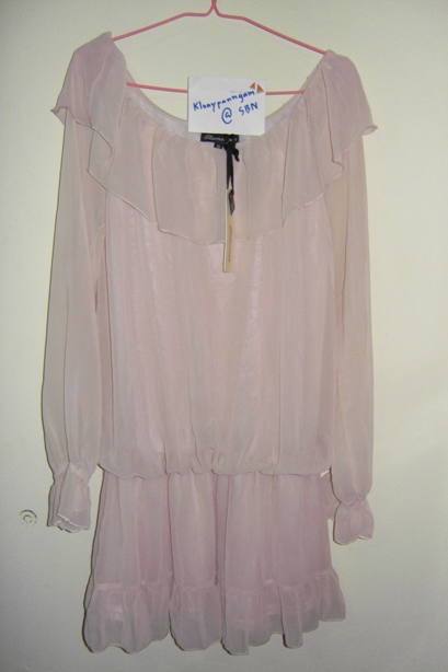 เสื้อผ้าชีฟองสีชมพูกลีบบัว ปกคอบัว ด้านหน้าทำเป็นชั้นๆน่ารักสุดๆ