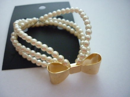 **สินค้าอยู่ไทยแล้วส่งฟรีค่ะ – H@M สร้อยข้อมือมุกโบว์ทองน่าร้ากกแบบมาใหม่ล่าสุดในเวป H@M ยังไม่ลงขายเลยค่ะ