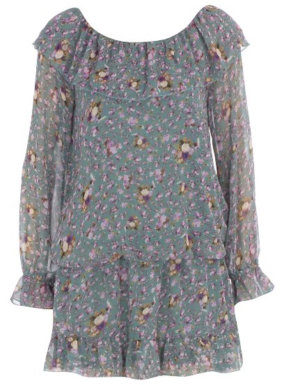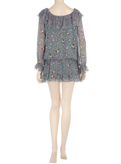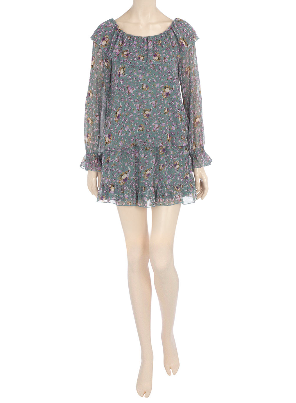 เดรสลายดอกไม้เล็กโทนสีฟ้าระบายด้านหน้าน่ารักมากๆค่ะ