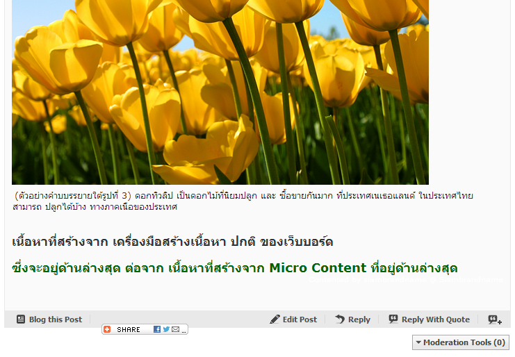เมื่อคลิ๊กที่ Post New Thread หรือ Reply to Thread เพื่อนสมาชิกจะสามารถเห็นกล่องเครื่องมือ สำหรับสร้าง Micro Content อยู่ด้านบนกล่องเครื่องมือ สำหรับสร้างเนื้อหา ของระบบเว็บบอร์ดเดิม ดังภาพด้านล่าง